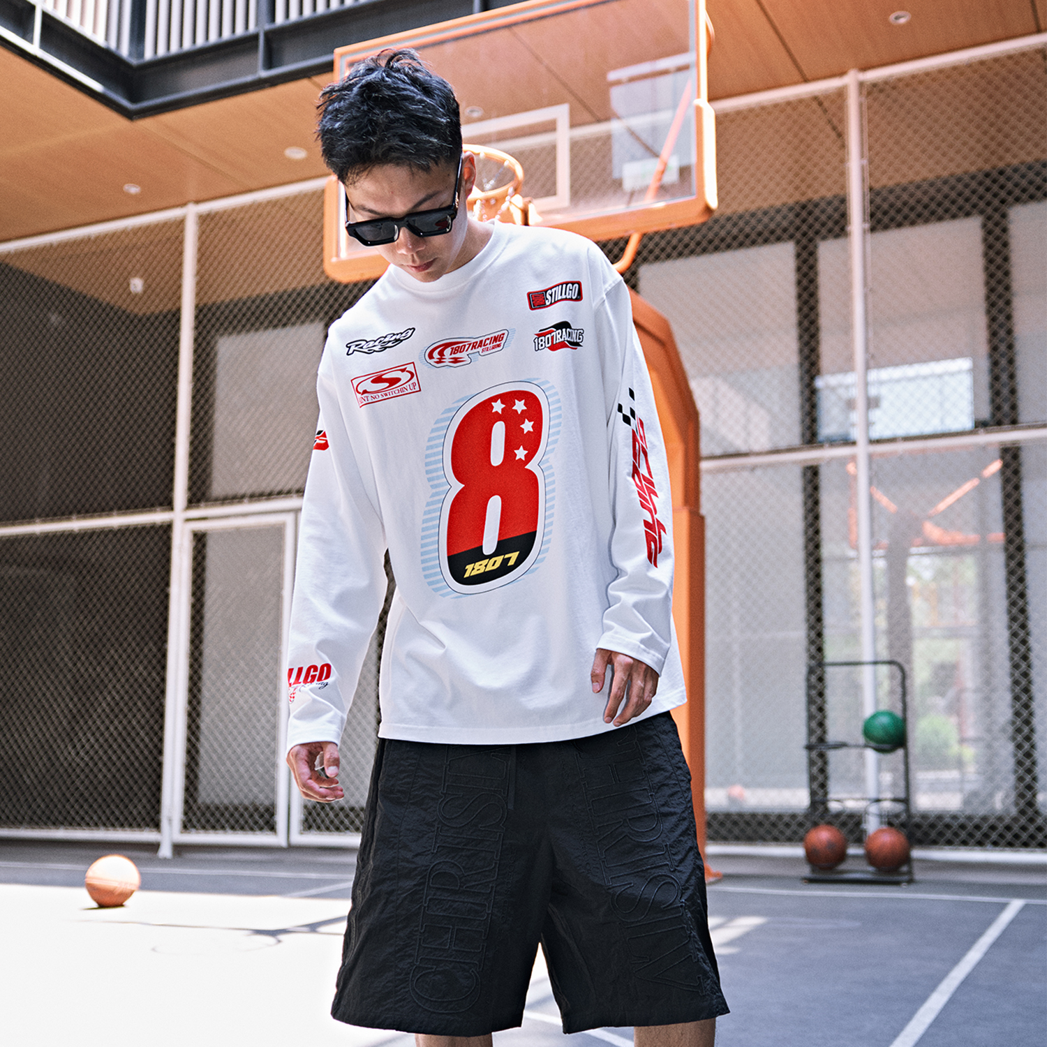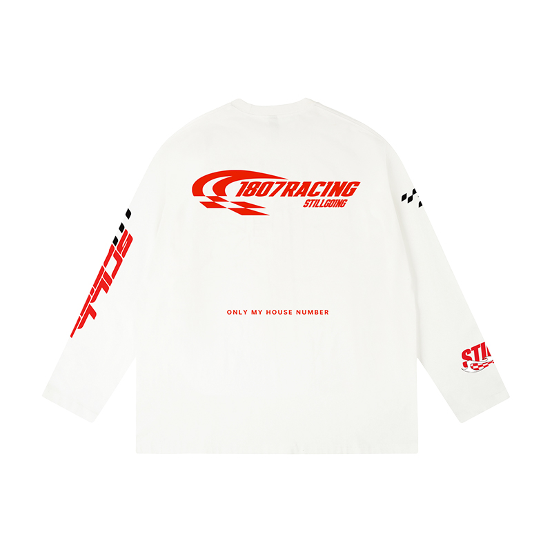 休闲复古上衣男女同款 美式 国潮设计 T恤秋新款 1807RACING印花长袖