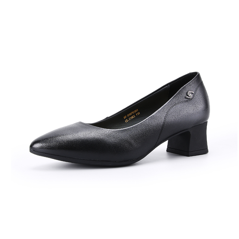 简约气质通勤工作鞋 蜘蛛王高跟鞋 时尚 尖头粗跟浅口单鞋 女2025秋季