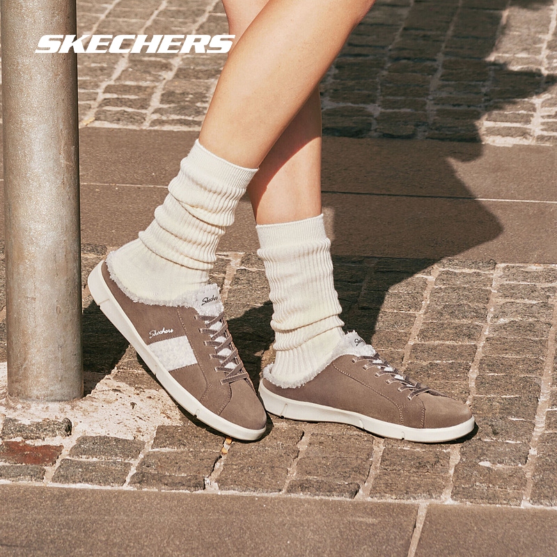 斯凯奇春夏女士运动休闲鞋 保暖羊羔绒轻质舒适轻便 一脚蹬加绒拖鞋
