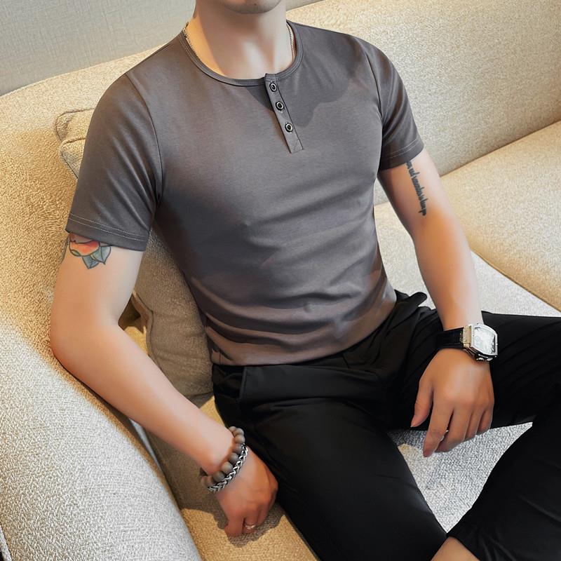 圆领T恤上衣薄款 夏季 亨利领纯色修身 韩版 打底体0624r 男士 时尚 短袖