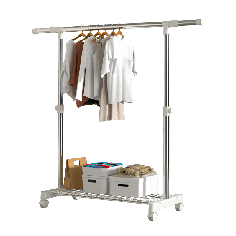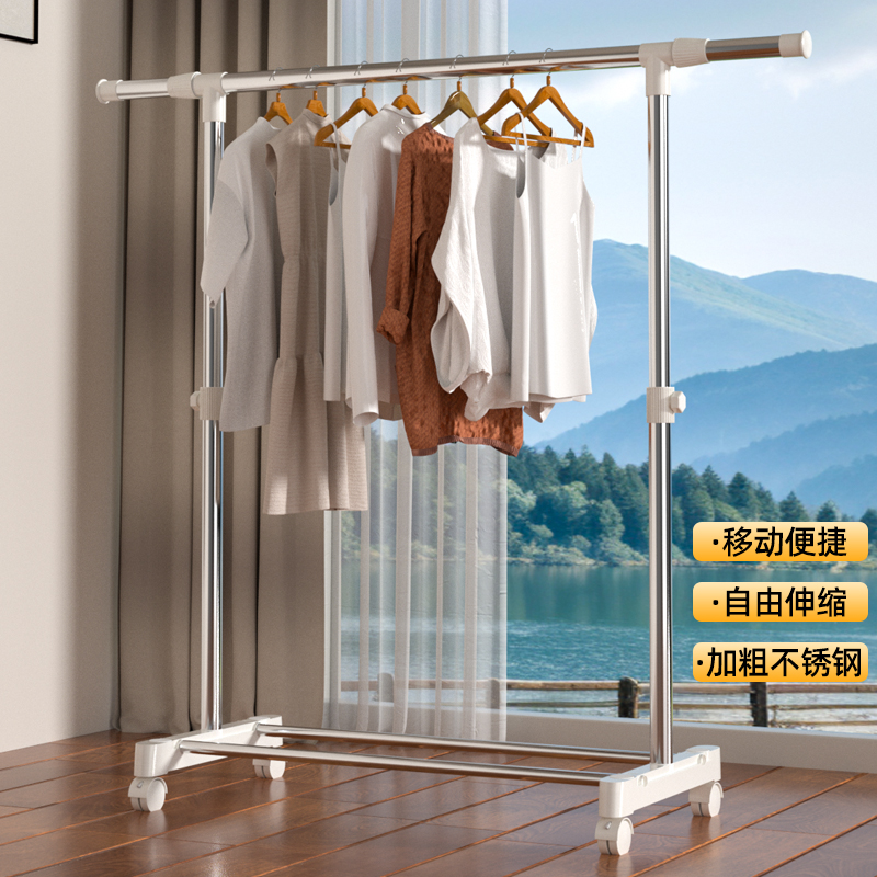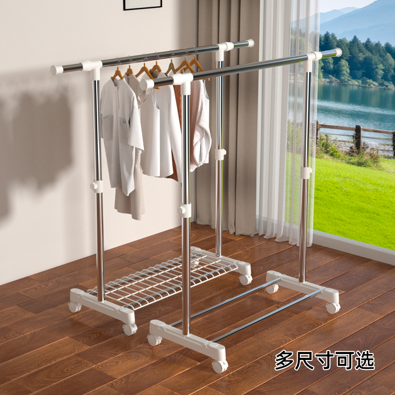 双杆式 衣帽架置地卧室阳台简易晾晒衣架双层挂衣杆升降收纳架带轮