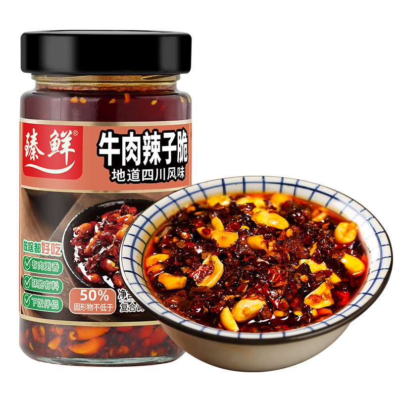 四川牛肉辣子脆麻辣即食油泼辣子香辣红油辣椒调料酱拌饭拌面花生