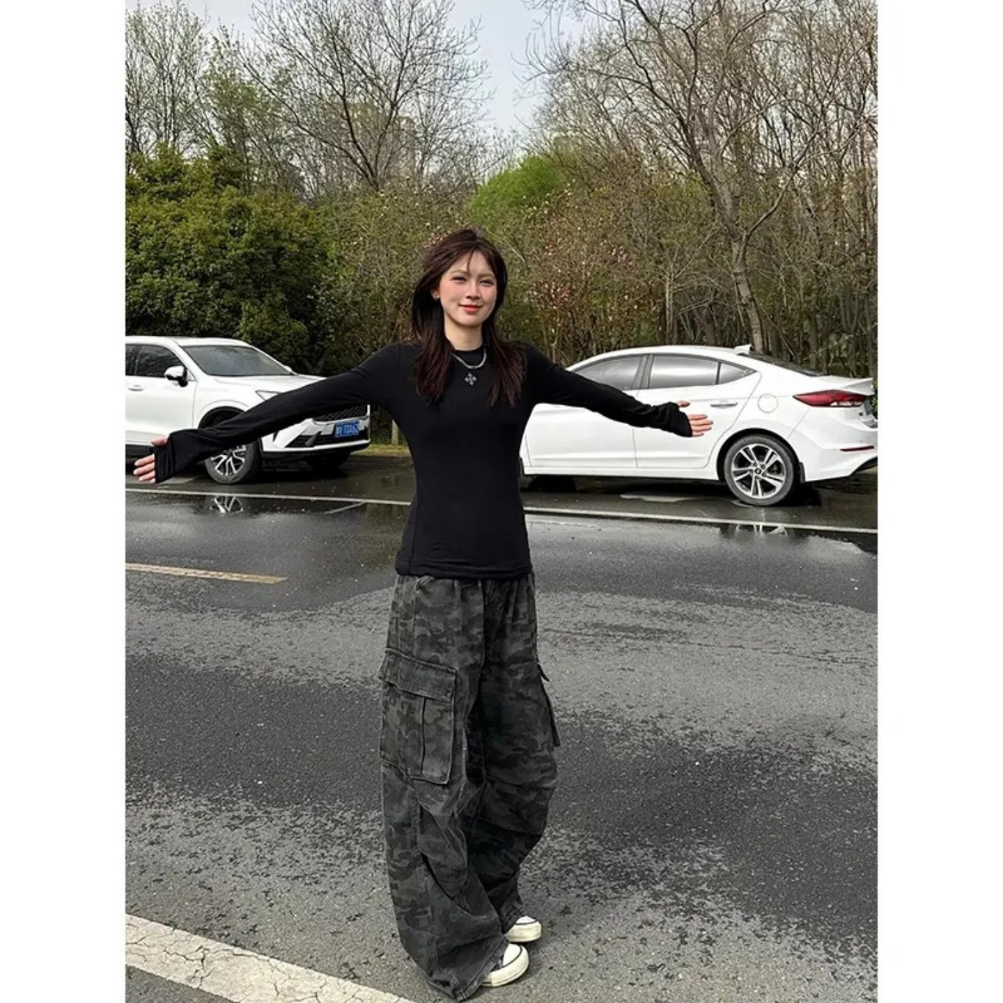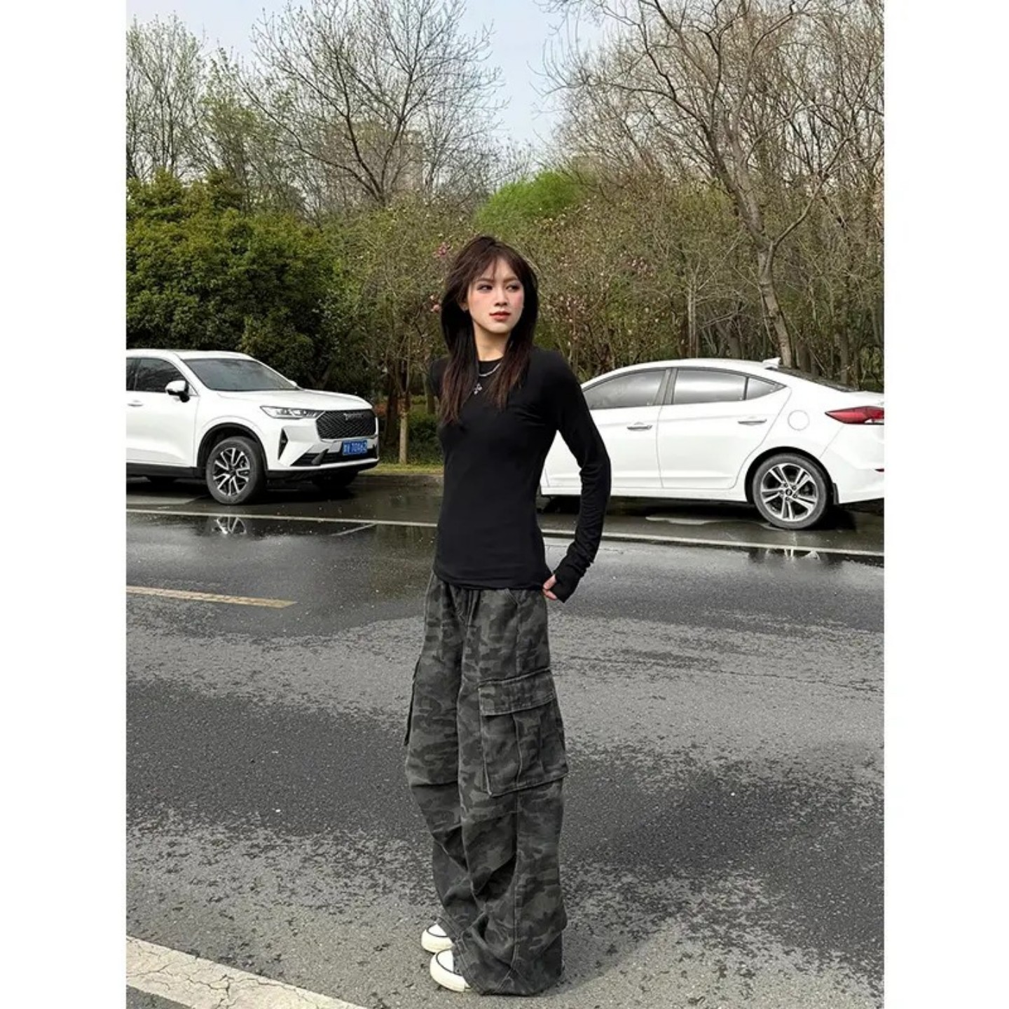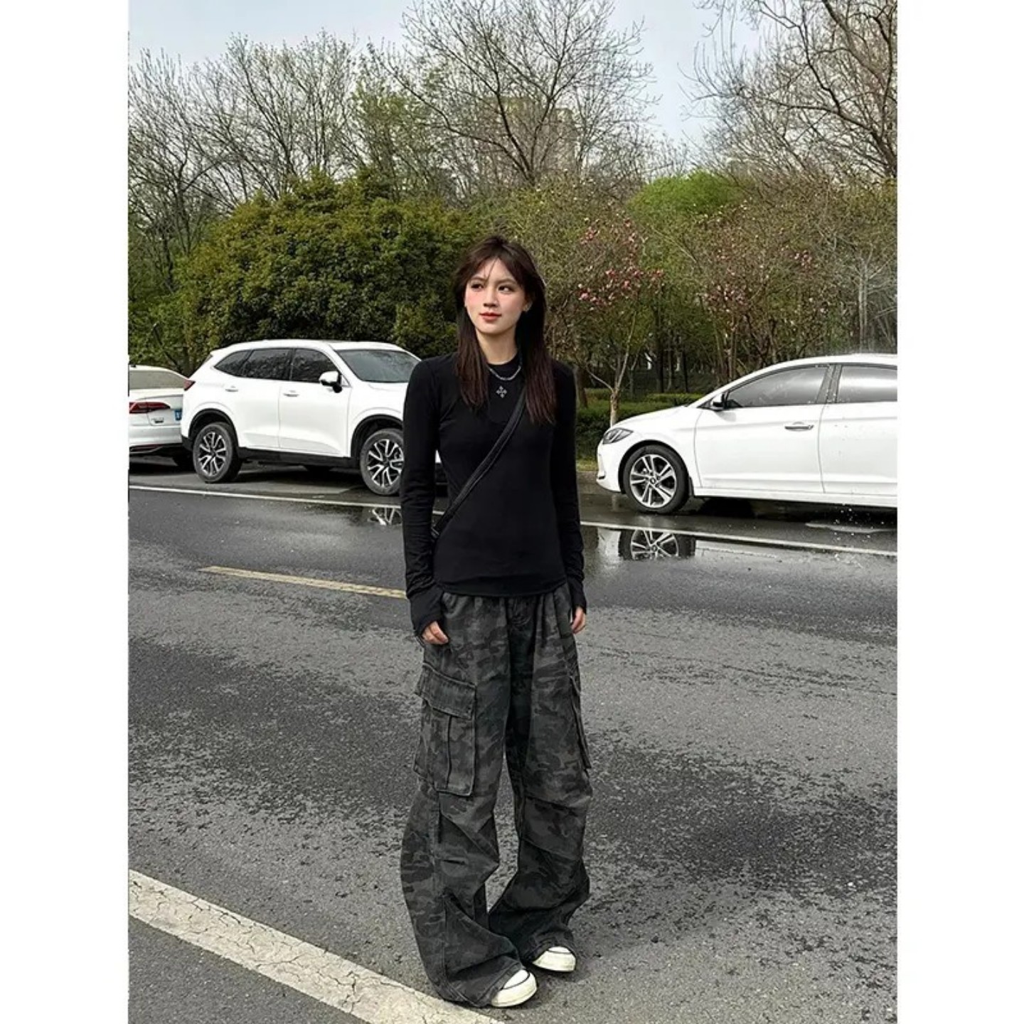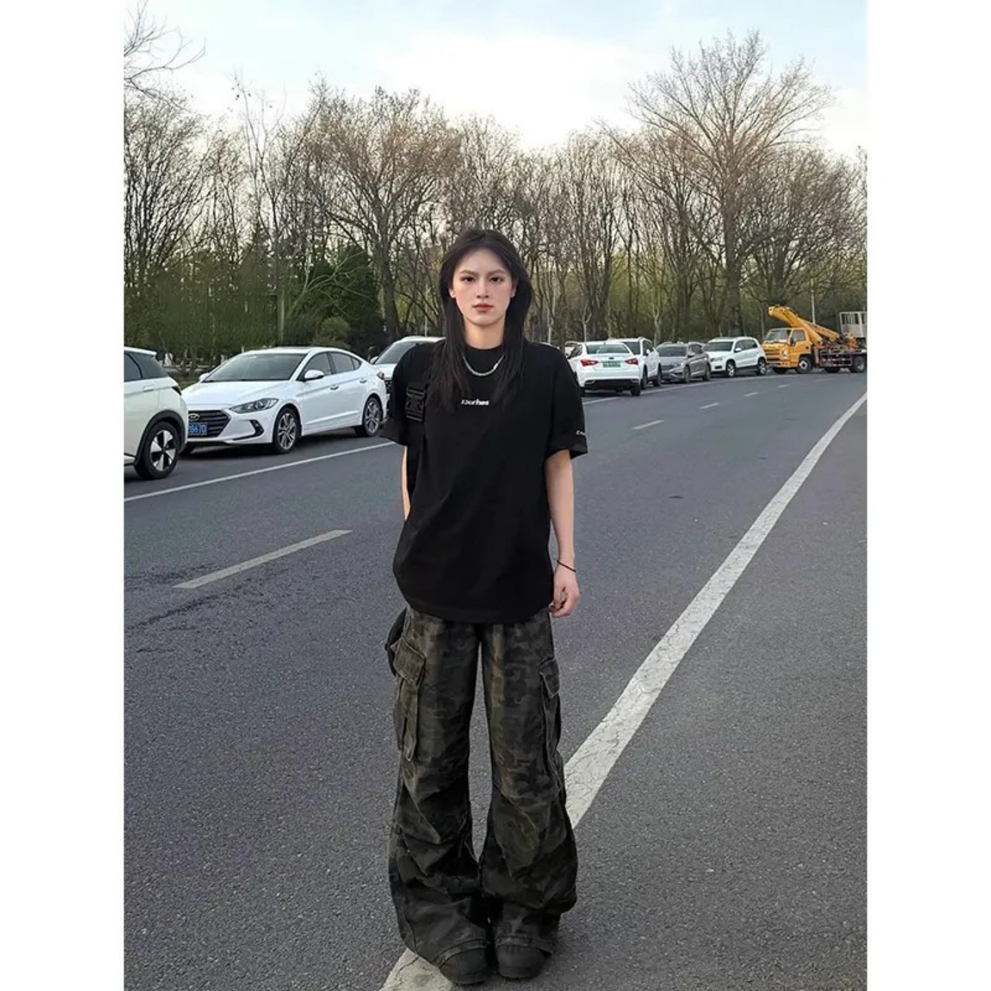 子直筒显瘦阔腿裤 美式 高腰微喇cleanfit男裤 迷彩裤 复古大口袋工装