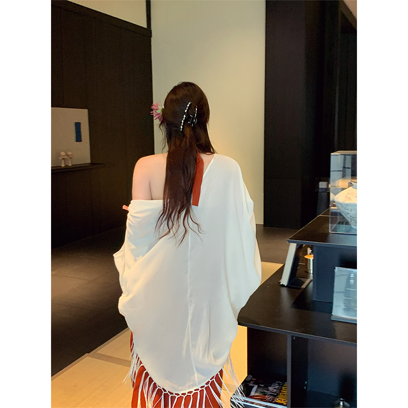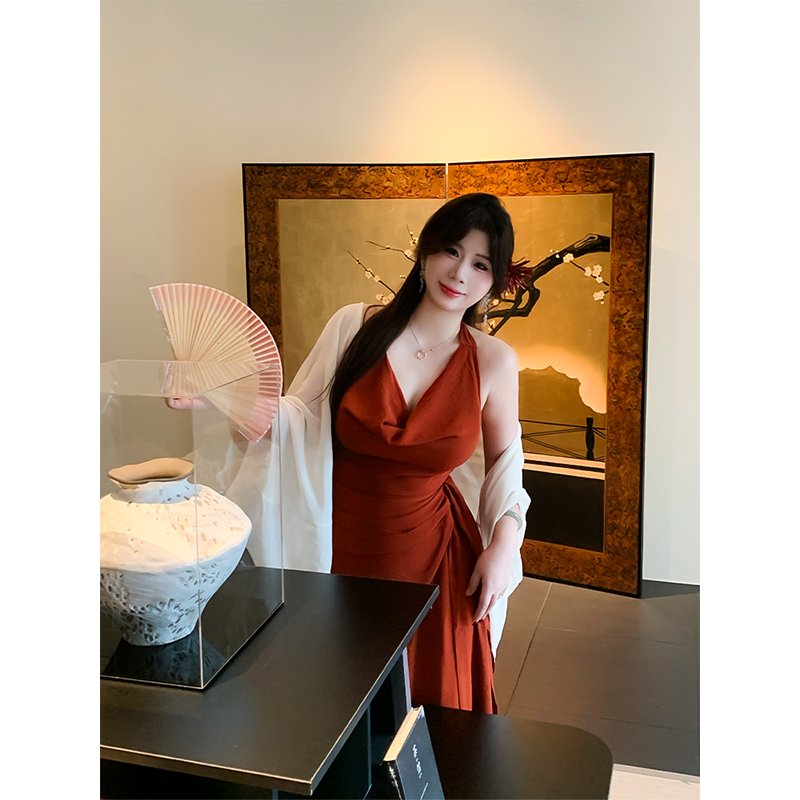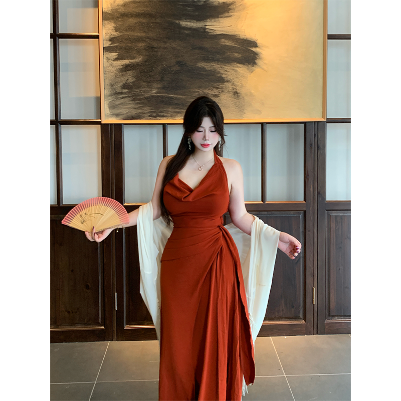 法式 朱砂点唇 荡领连衣裙微胖显瘦纯欲气质收腰长裙子 babes