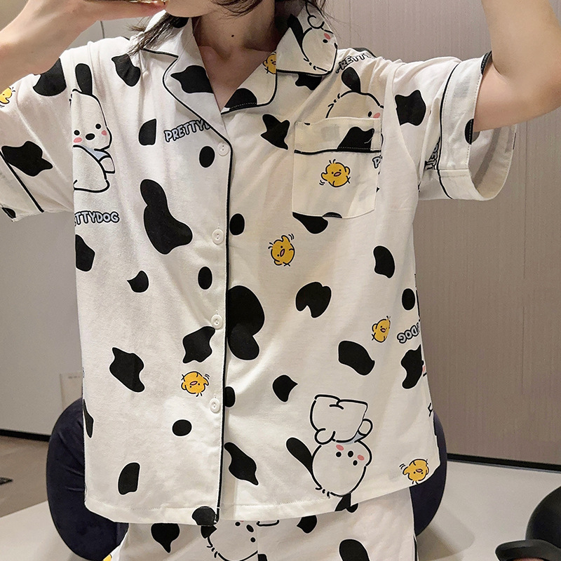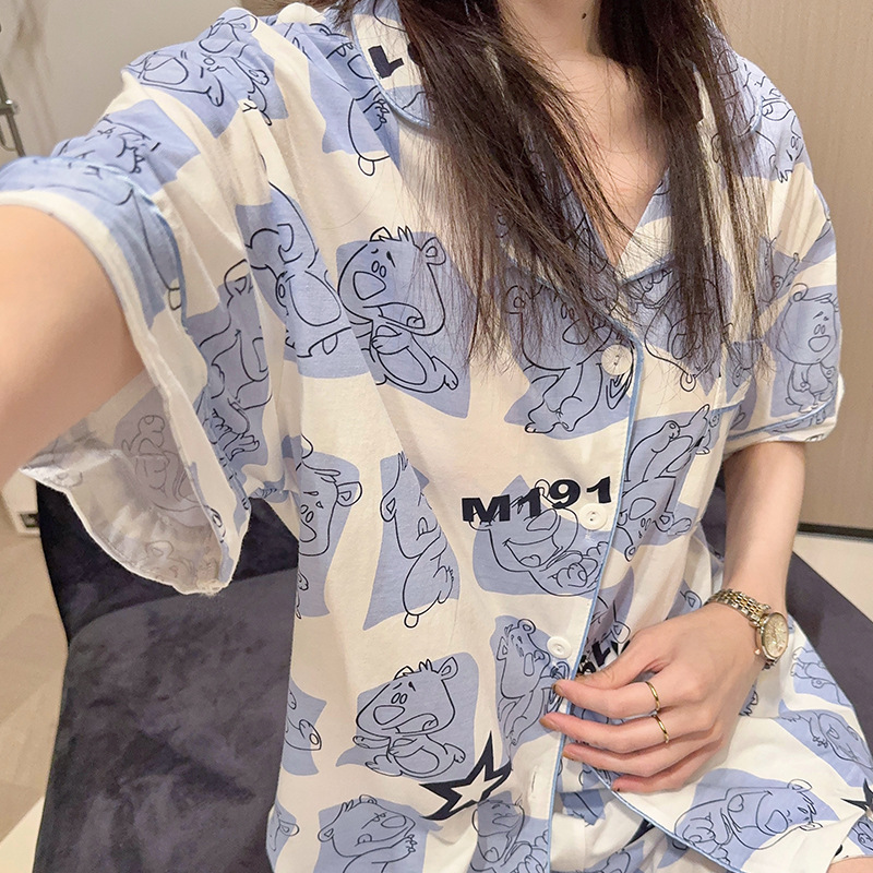 新款 宽松少女家居服套装 韩版 短裤 可外穿 卡通6535棉短袖 睡衣女夏季