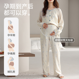 薄款 顶瓜瓜孕妇睡衣夏季 大码 纯棉纱布可外穿家居服套装 月子服 女款