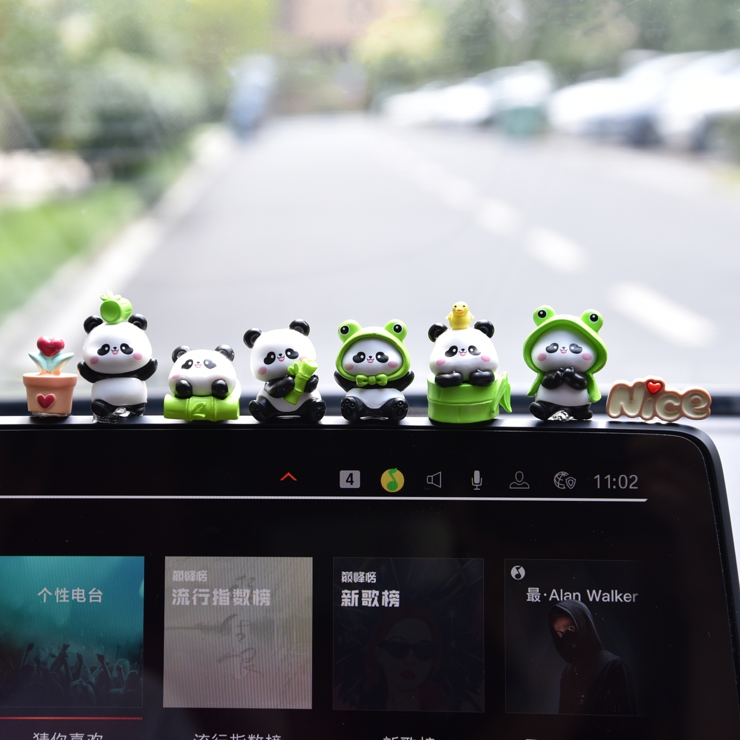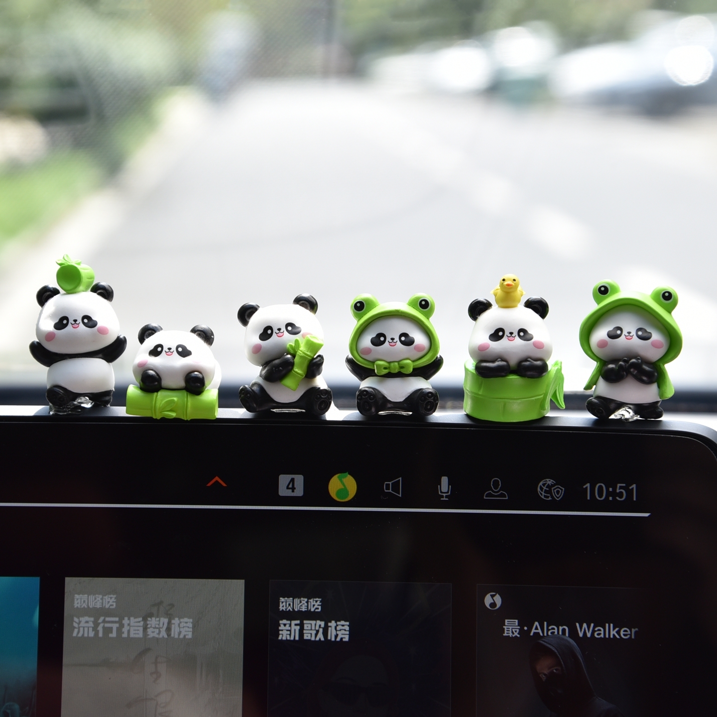 汽车摆件饰品中控台显示屏幕趴趴熊猫玩偶公仔车载可爱装 饰用品女