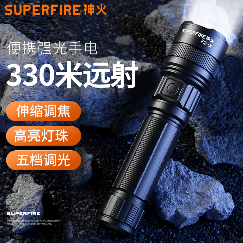 神火手电筒强光充电超亮led便携聚光F2变焦登山户外小型2025新款