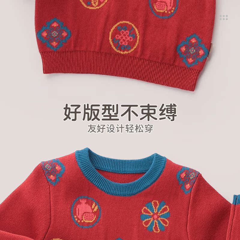 圆领棉线衣25秋冬保暖男女毛衣红色宝宝上衣 拉比童装 商场同款
