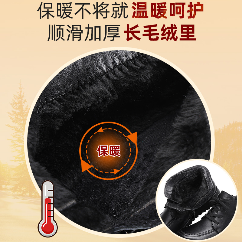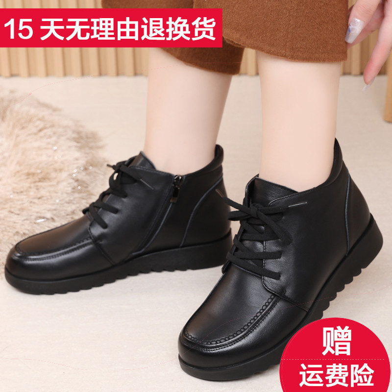 舒适老人女鞋 女冬季 加绒短靴防滑软底中老年皮鞋 织丽真皮妈妈棉鞋
