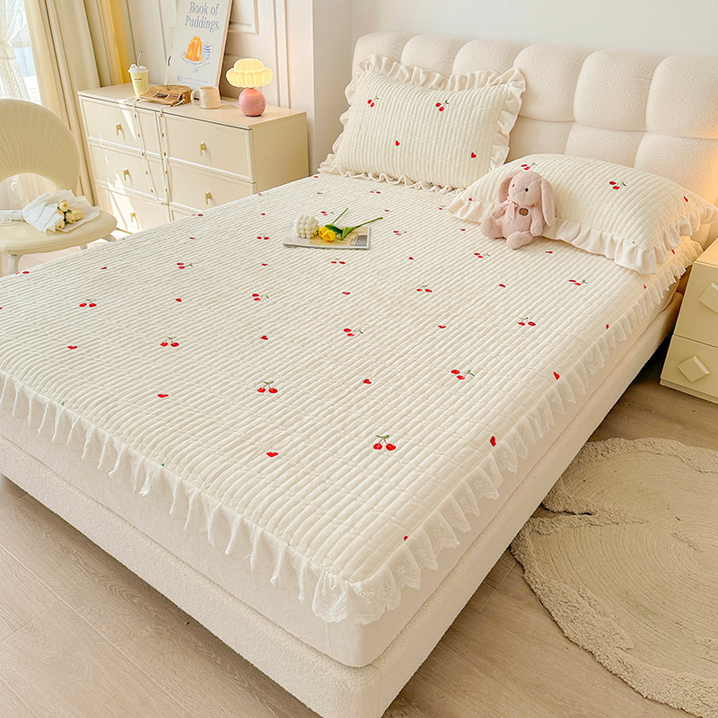 A母婴级水洗棉床笠单件纯色床罩三件套席梦思床垫保护套防滑床单