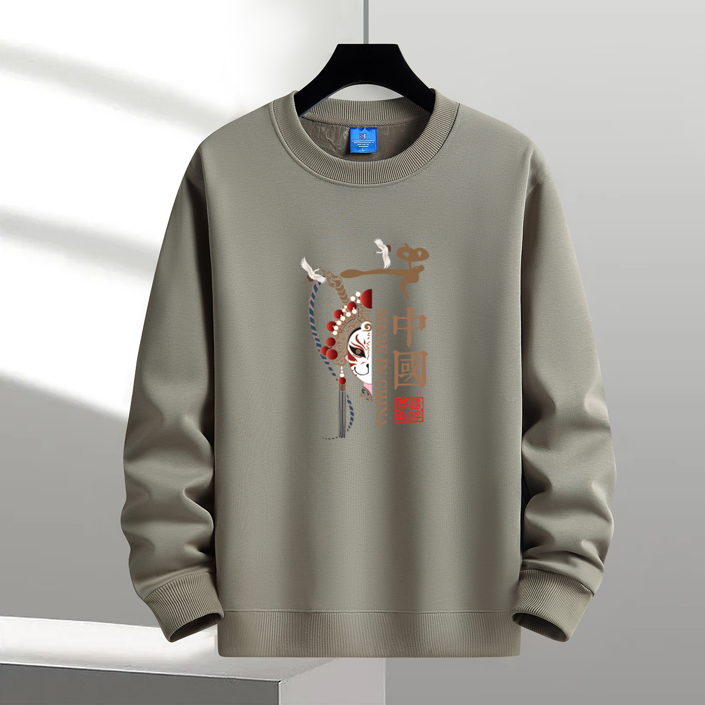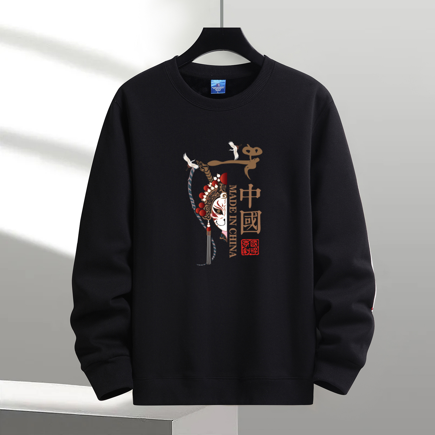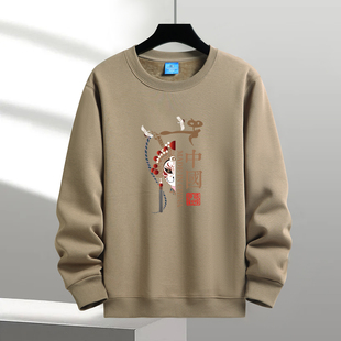 上衣 国风衣服秋冬打底衫 卫衣男2025新款 加绒加厚宽松保暖圆领长袖