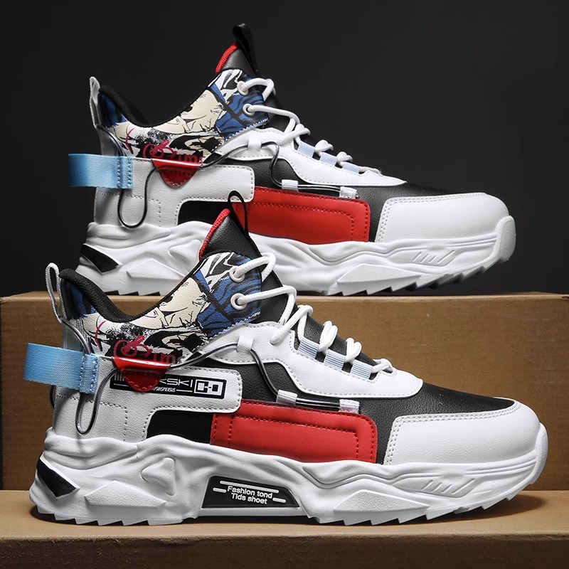 男鞋 子学生运动鞋 新款 皮面鞋 秋冬高帮休闲鞋 电池熊猫鸿星尔克板鞋