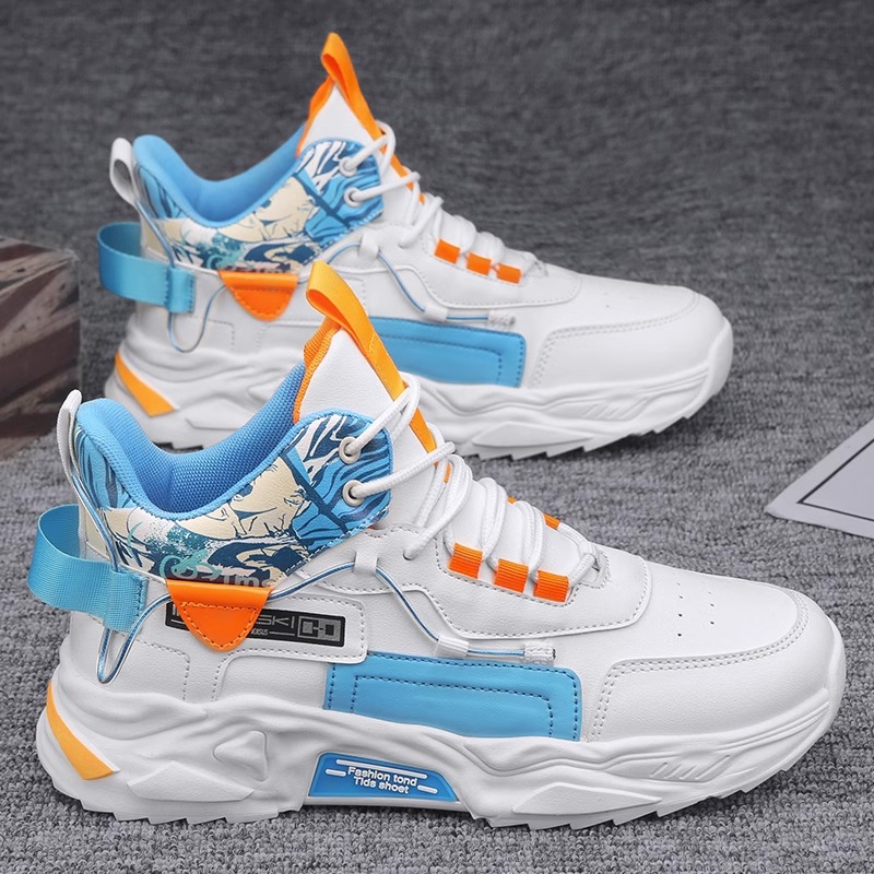 运动鞋 高帮休闲鞋 秋冬新款 子学生厚底男鞋 皮面鞋 征服鸿星尔克板鞋