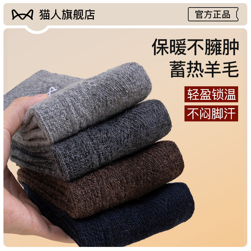 加绒加厚中筒袜女加绒加厚防寒保暖羊毛袜女士长袜秋冬季 棉毛袜子