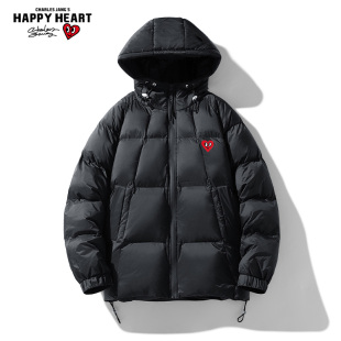 式 太平鸟男装 衬衫 宽松短款 保暖外套黑色防寒夹克 轻薄羽绒服冬季