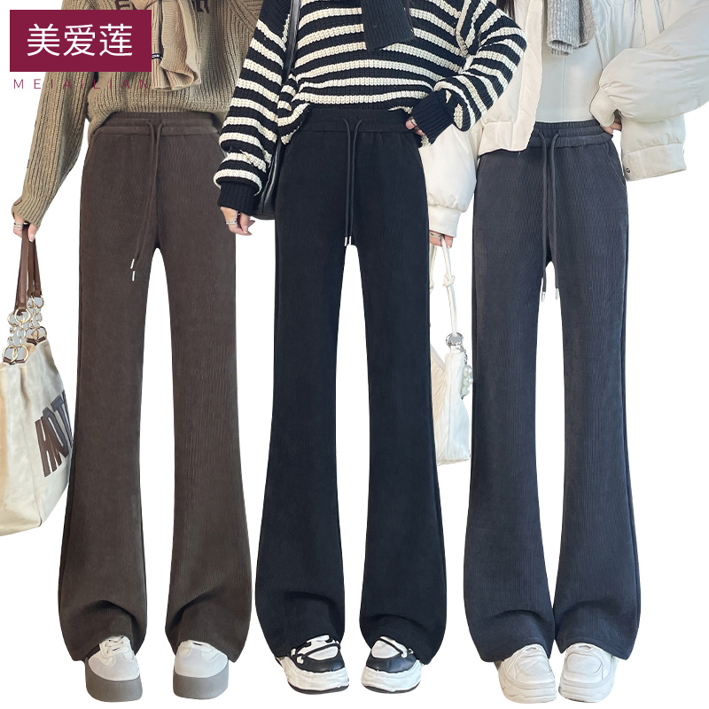 高腰显瘦长裤 加绒加厚大码 女休闲裤 春秋冬微喇叭裤