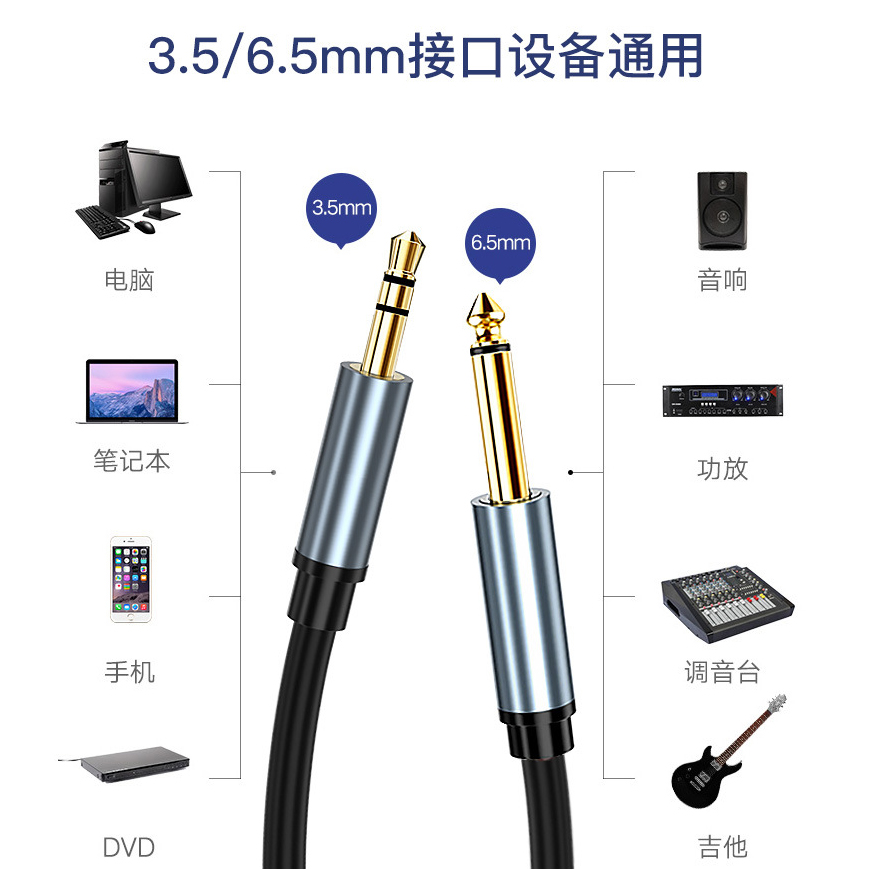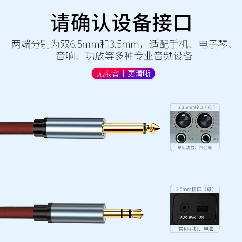 3.5mm转双6.5mm专业AUX音频线大两芯一分二公转公双声道立体声手机笔记本电脑连接音响音箱功放调音台电子琴