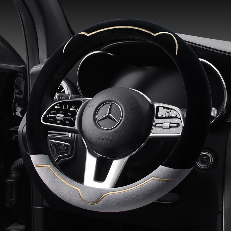 2025新款 短毛绒保护套女士防滑可爱卡通汽车把套 汽车方向盘套冬季