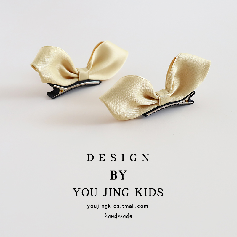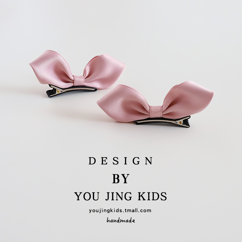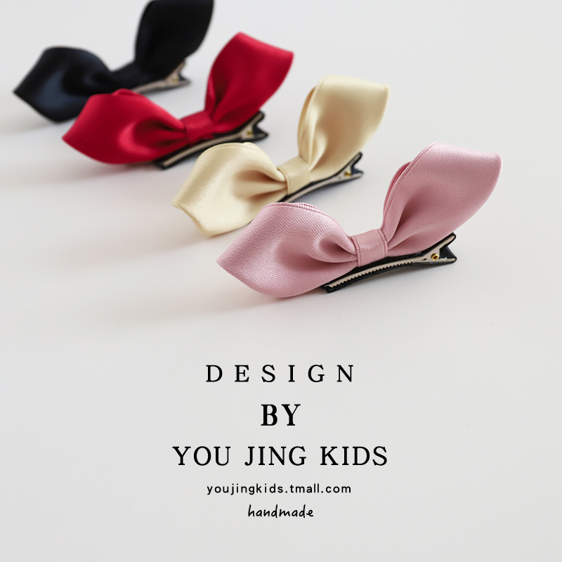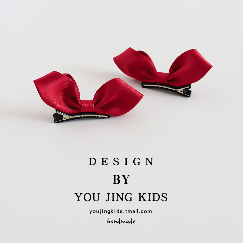 儿童蝴蝶结发夹公主女童发卡子顶夹小女孩红色全包布宝宝周岁头饰