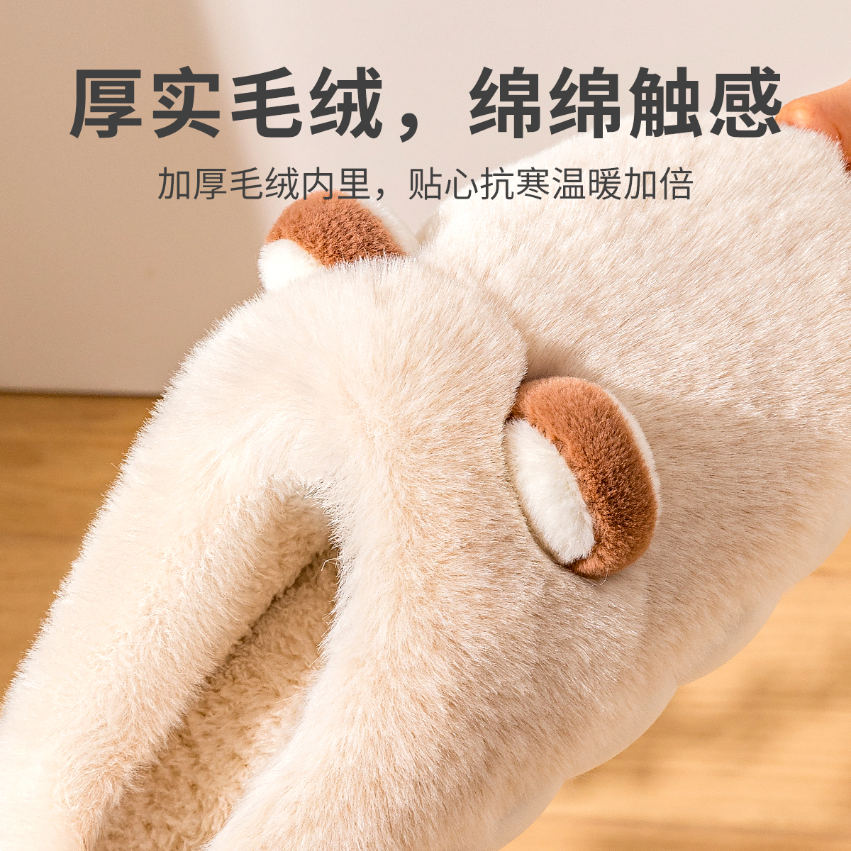 毛毛绒室内家居保暖鞋 厚底防滑2025新款 子居家 女士秋冬季 棉拖鞋