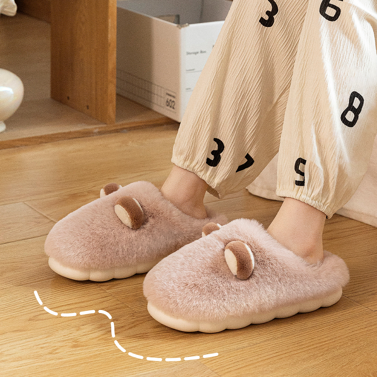 防滑厚底包跟室内家居月子保暖可爱毛毛棉鞋 孕妇棉拖鞋 女士秋冬季