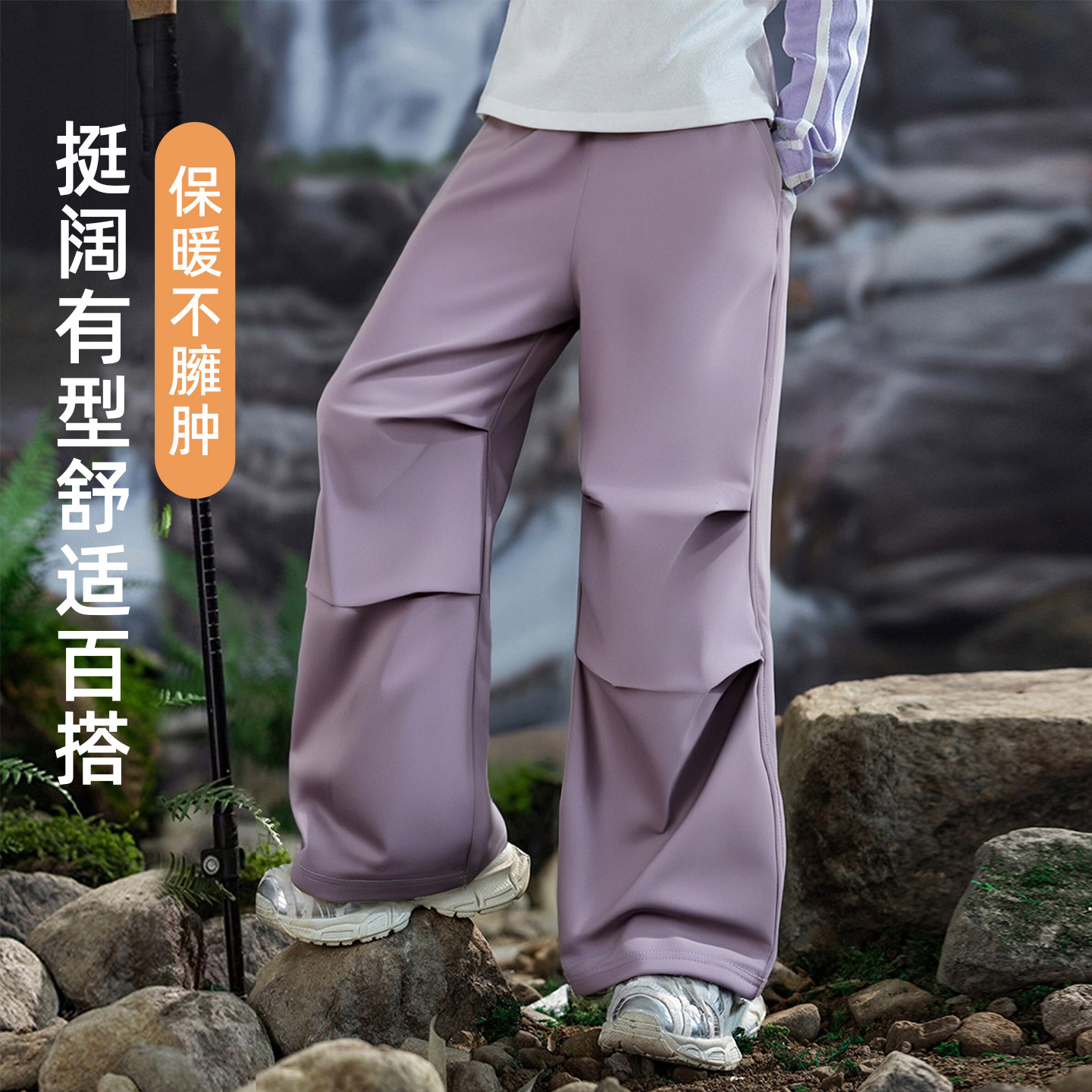 裤 女童加绒加厚裤 初中生防水运动工装 儿童保暖伞兵阔腿裤 子秋冬季