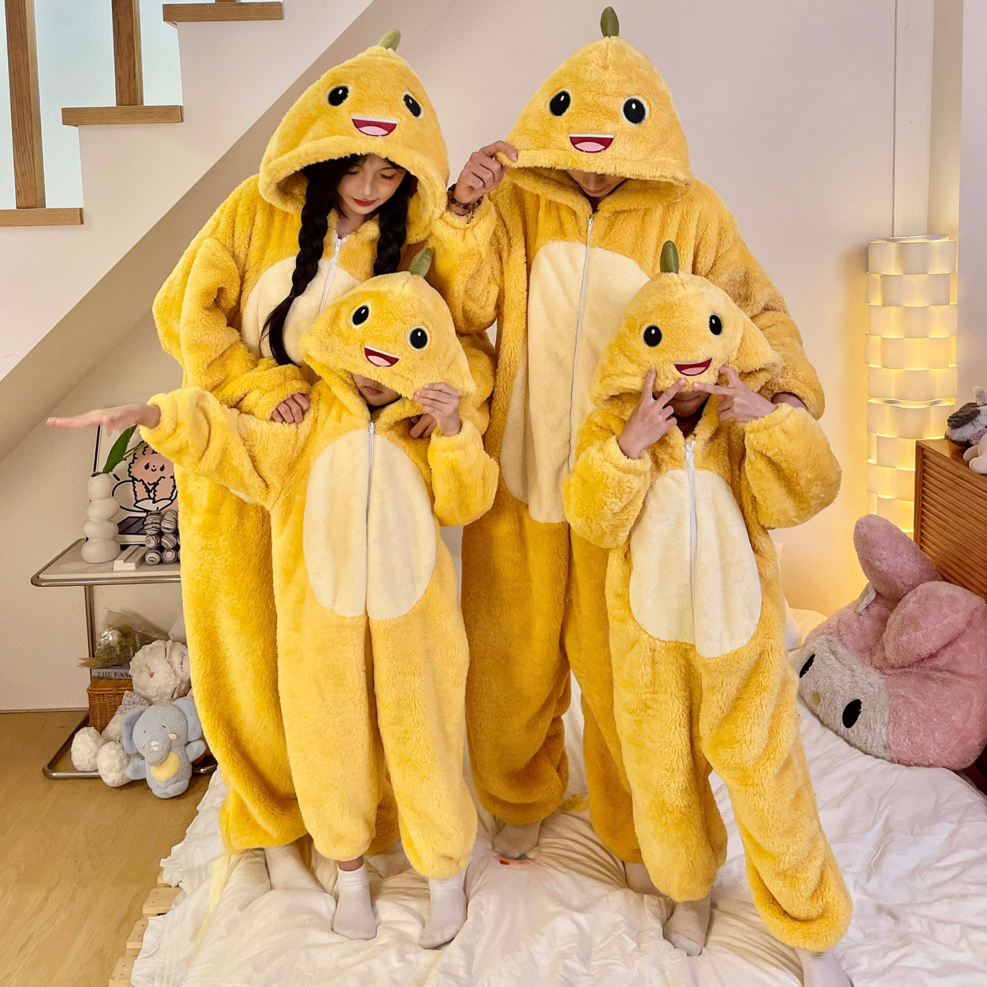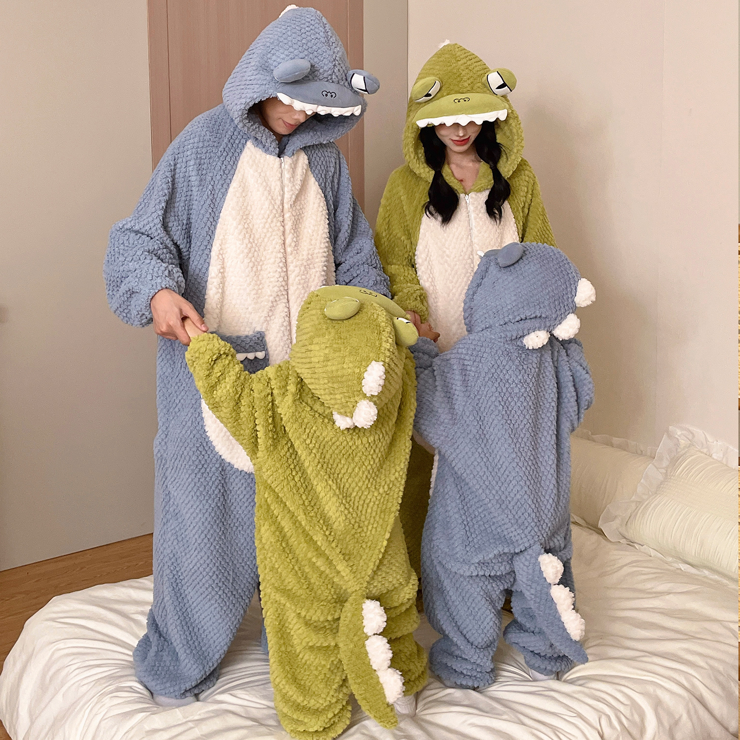 珊瑚绒连体睡衣搞怪恐龙男女童家居服 一家三口四口亲子装 冬季 新款