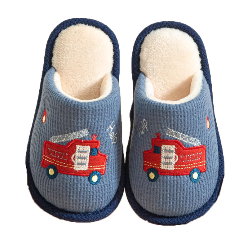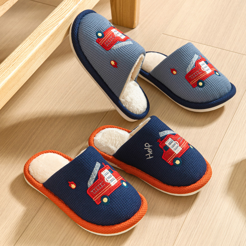 儿童棉拖鞋 冬天 秋冬男童室内家用大童卡通小汽车男孩防滑宝宝托鞋