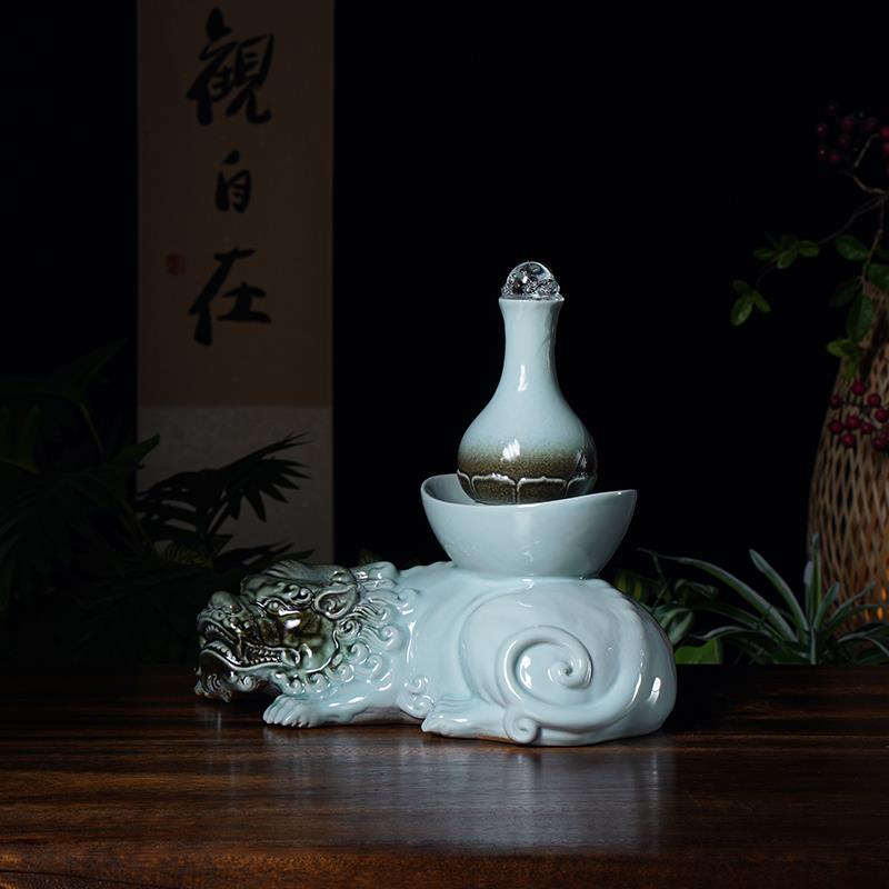 貔貅招财摆件流水循环水风水轮转运球办公室茶桌开业乔迁礼装 饰品
