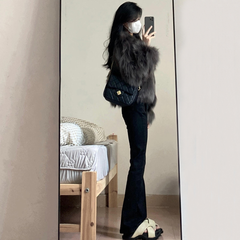 加绒拖地马蹄裤 黑色微喇牛仔裤 高腰显瘦弹力喇叭裤 新款 女2025秋季