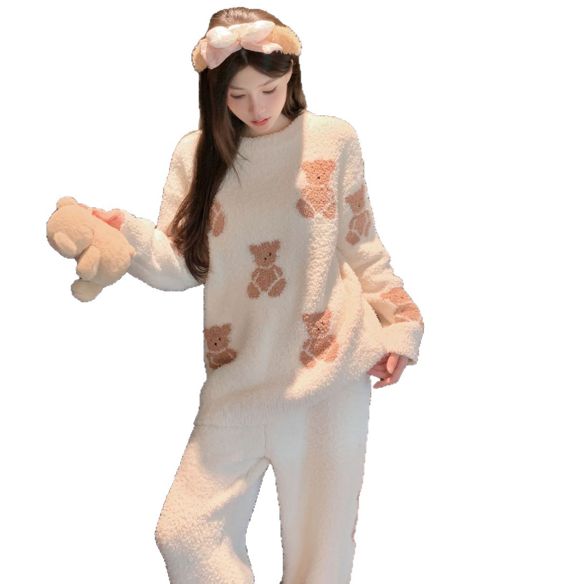 家居服套装 芬腾蓬蓬绒情侣睡衣女秋冬季 保暖抗静电珊瑚绒青年男士