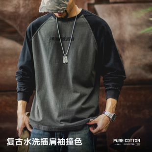 纯棉长袖 冬撞色上衣 T恤少女春秋初中高中学生外穿内搭宽松打底衫