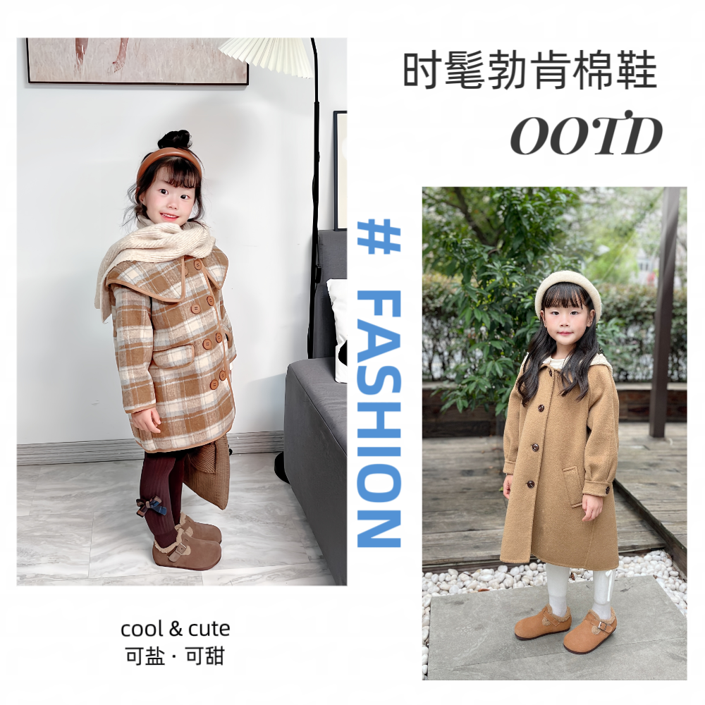 女童宝宝棉鞋 儿童棉拖鞋 室内居家包跟静音软底加绒毛毛鞋 冬季 新款