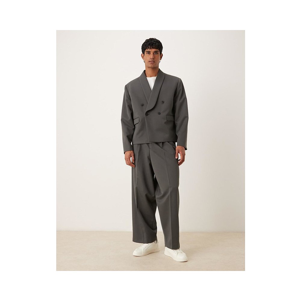 潮奢 木炭色斜纹布西装 ASOS 设计宽松款 外套 男士 1h可退