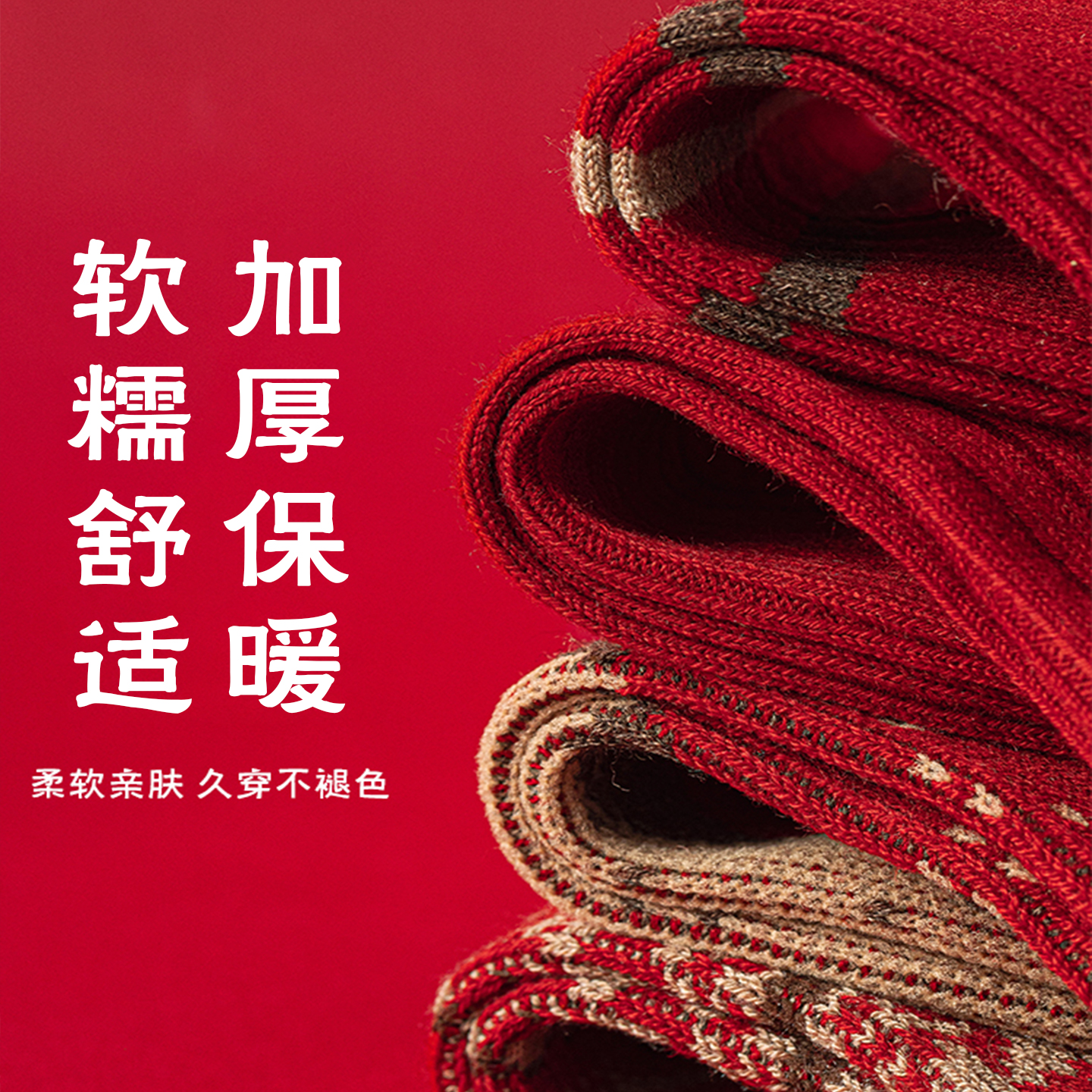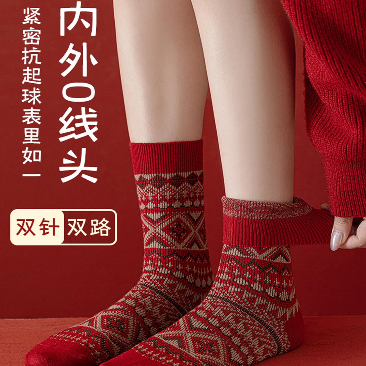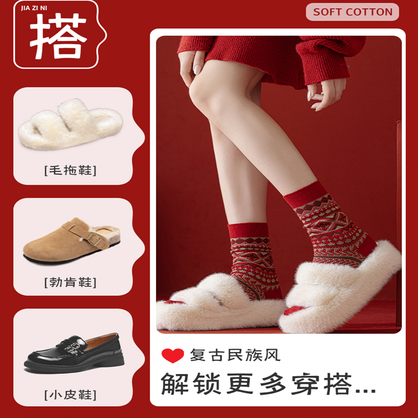 复古民族风红色袜子女秋冬款 本命年鸿运中筒袜新年保暖大红袜长袜