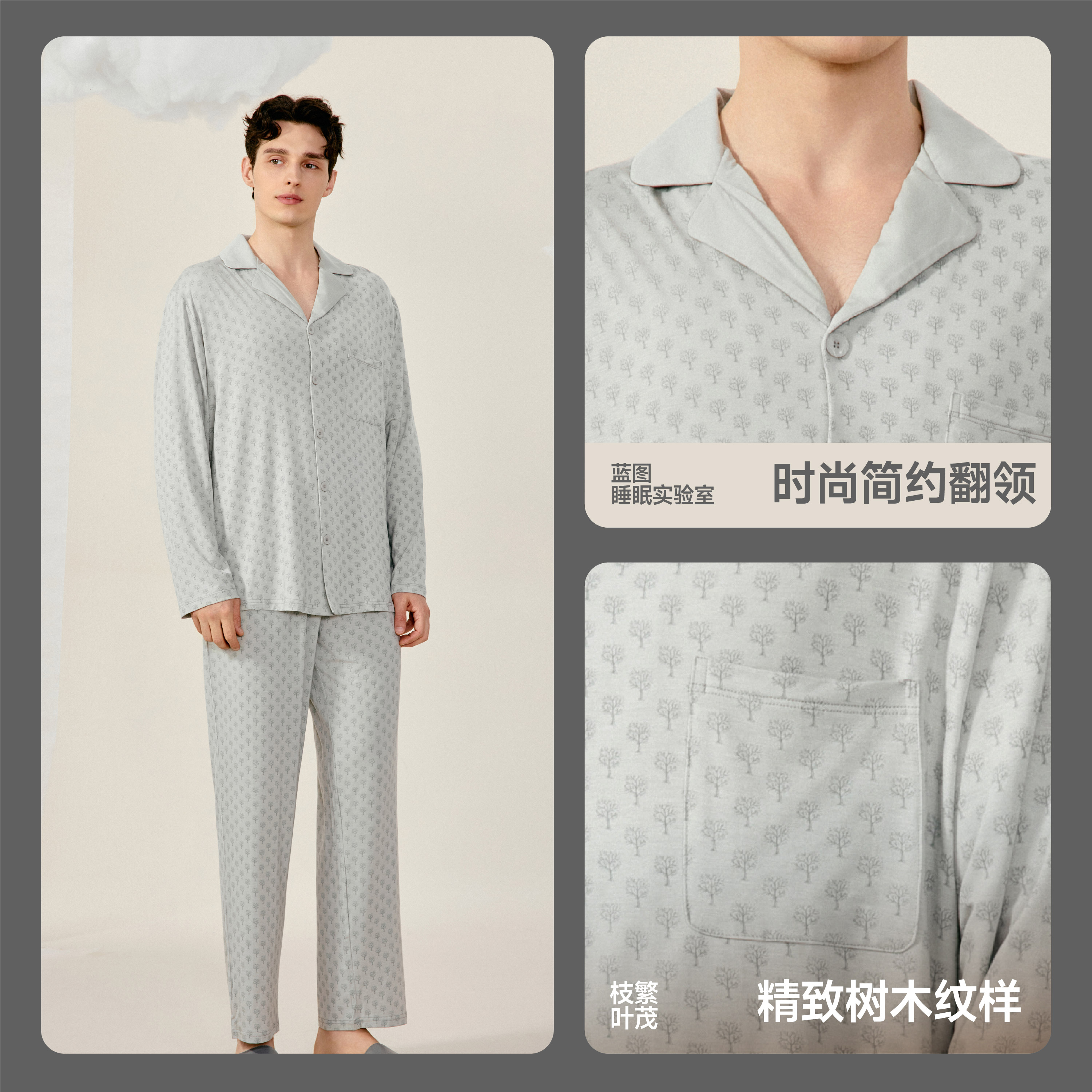 新款 套装 长袖 开衫 情侣睡衣女柔软莫代尔棉家居服男大码 贝妍春秋季