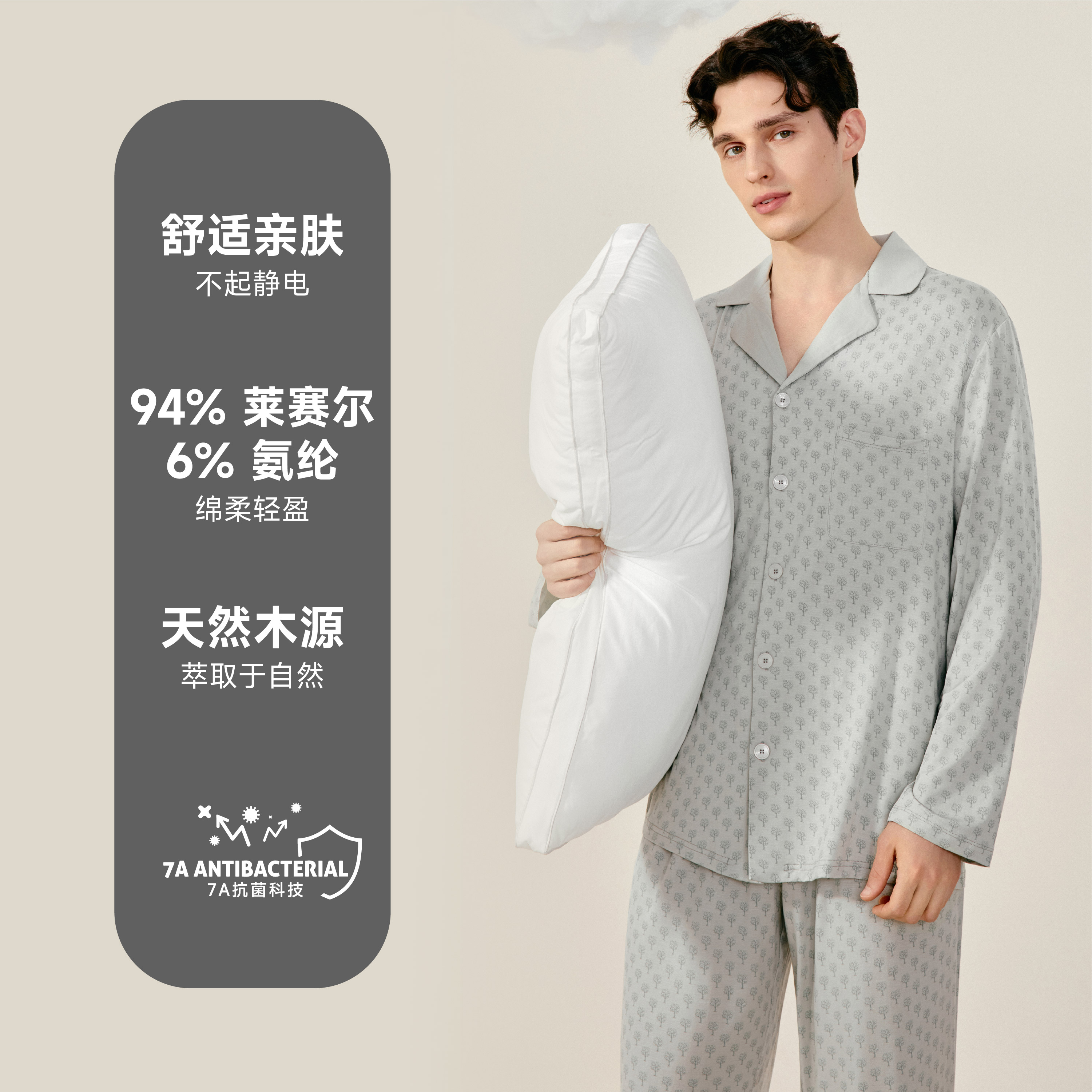 家居服套装 猫人100%纯棉睡衣男士 圆领可外穿男士 长袖 春秋2025新款