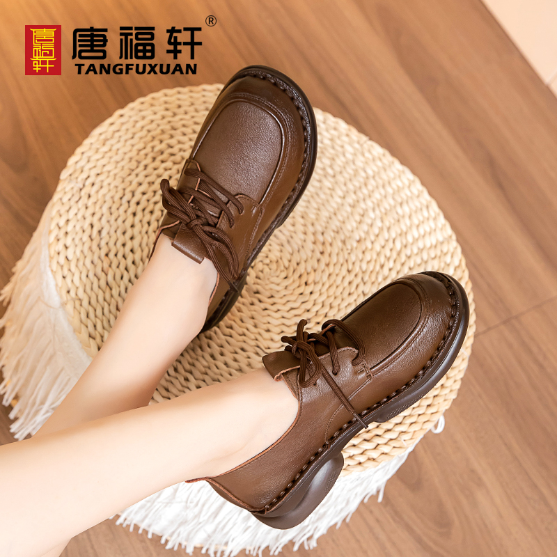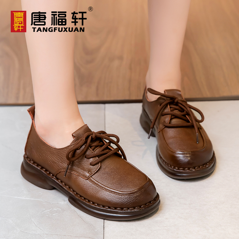 乐福鞋 春秋百搭黑色真皮妈妈单鞋 牛皮 女2025新款 英伦风厚底小皮鞋