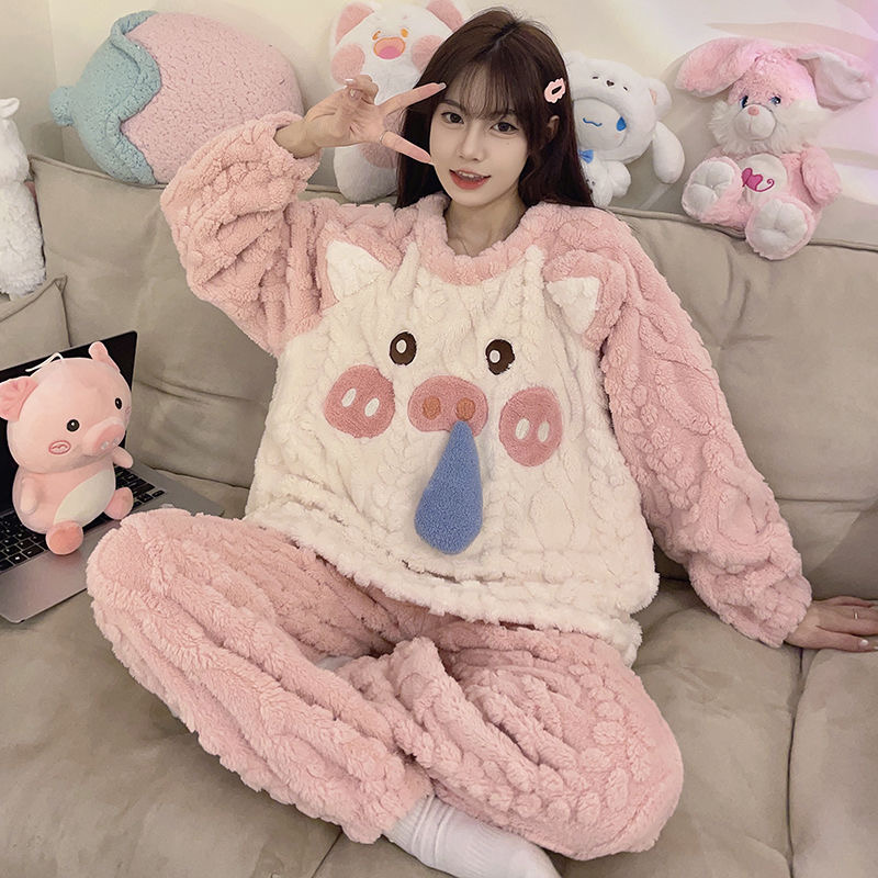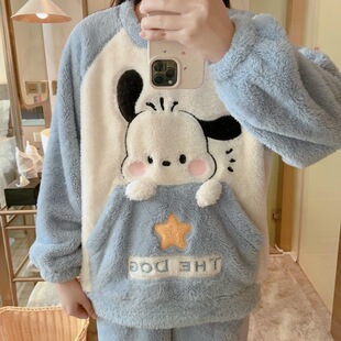 秋冬天 2025新款 小狗睡衣女冬季 珊瑚绒加厚加绒法兰绒家居服套装