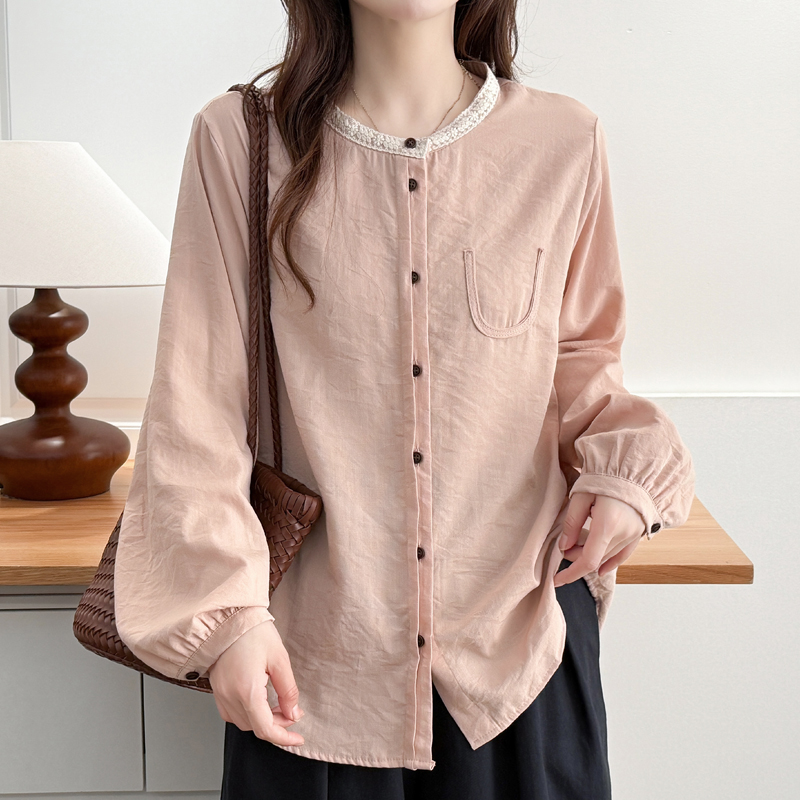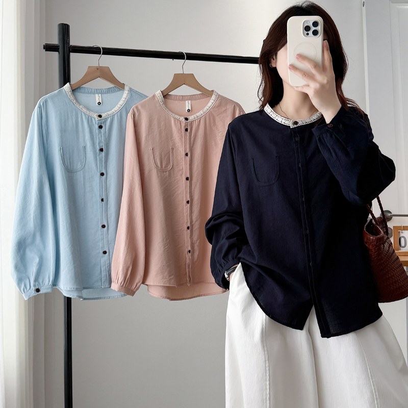 洋气花边领长袖 韩版 衬衫 秋装 宽松显瘦设计感上衣 胖mm气质大码 时尚