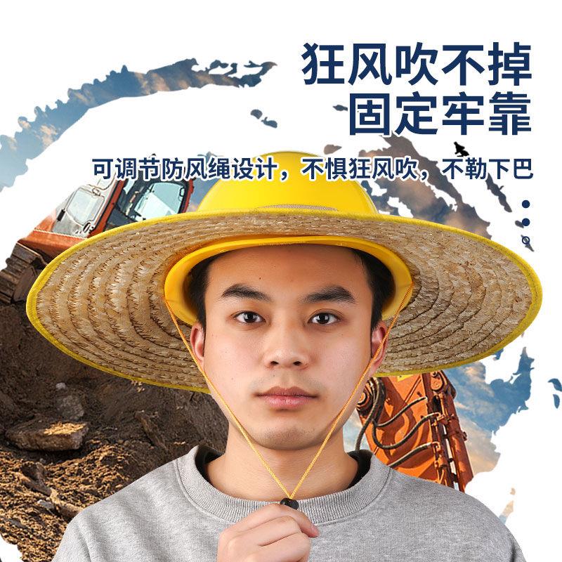 安全帽施工地防晒遮阳帽檐夏季 专用加大无顶草帽子草编太阳帽沿男