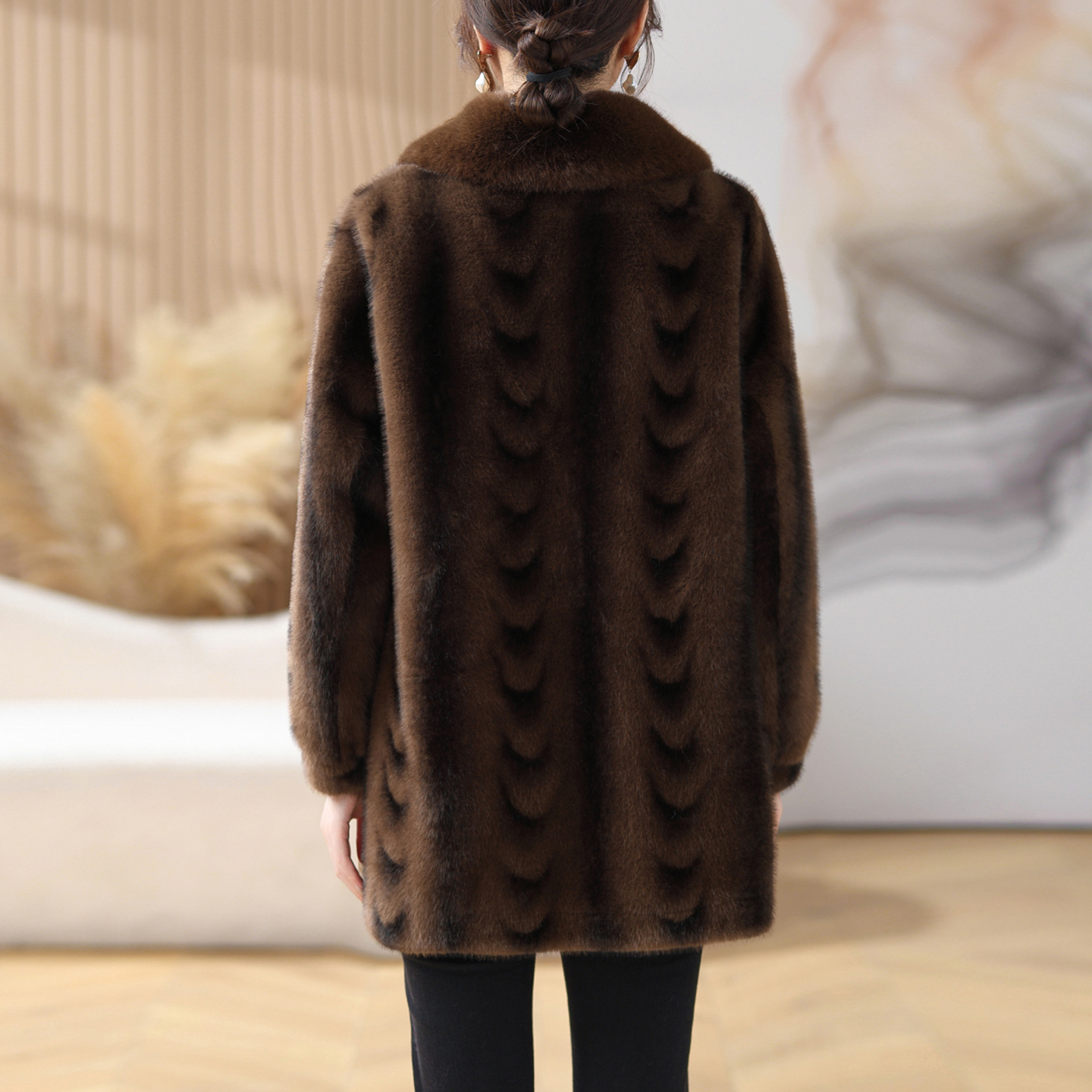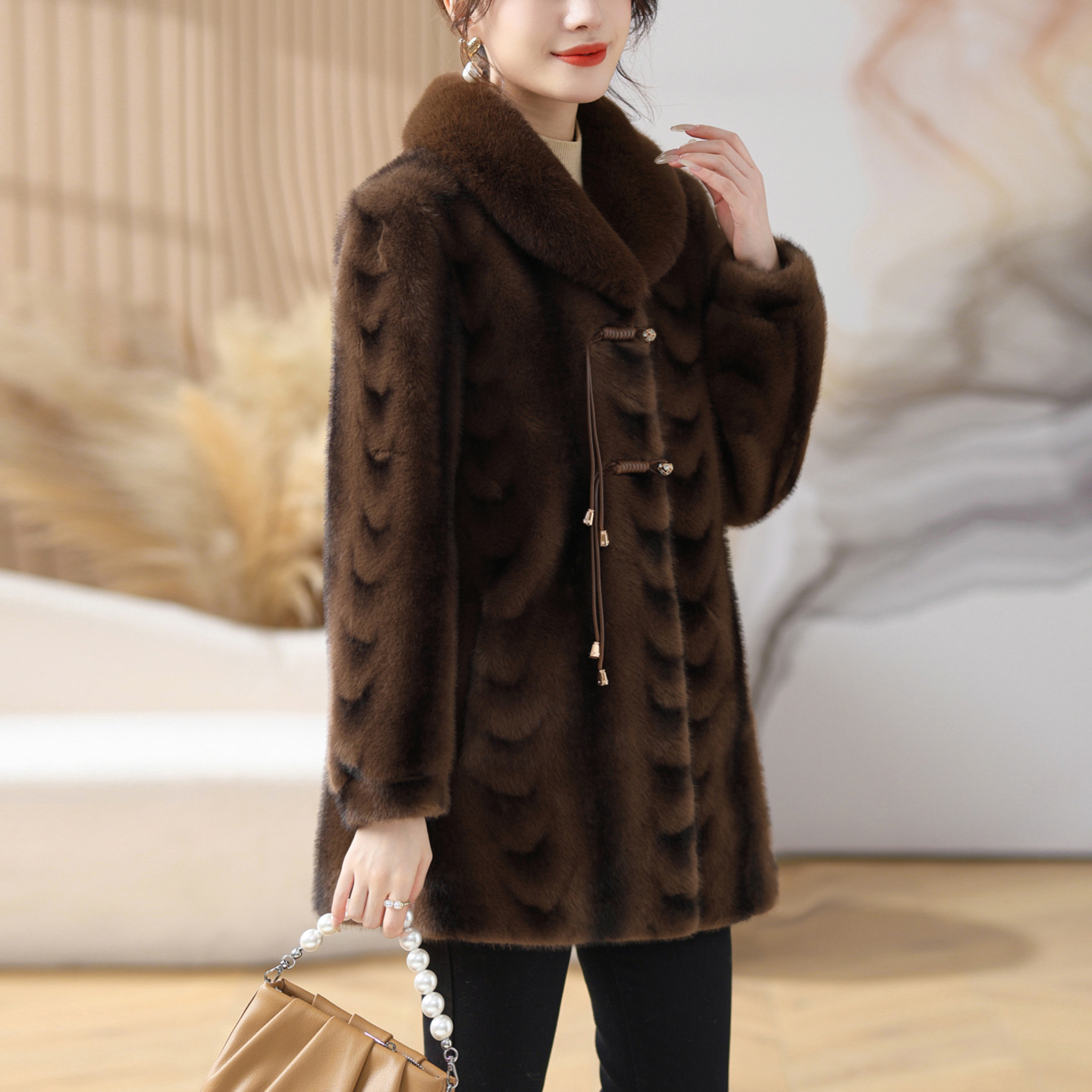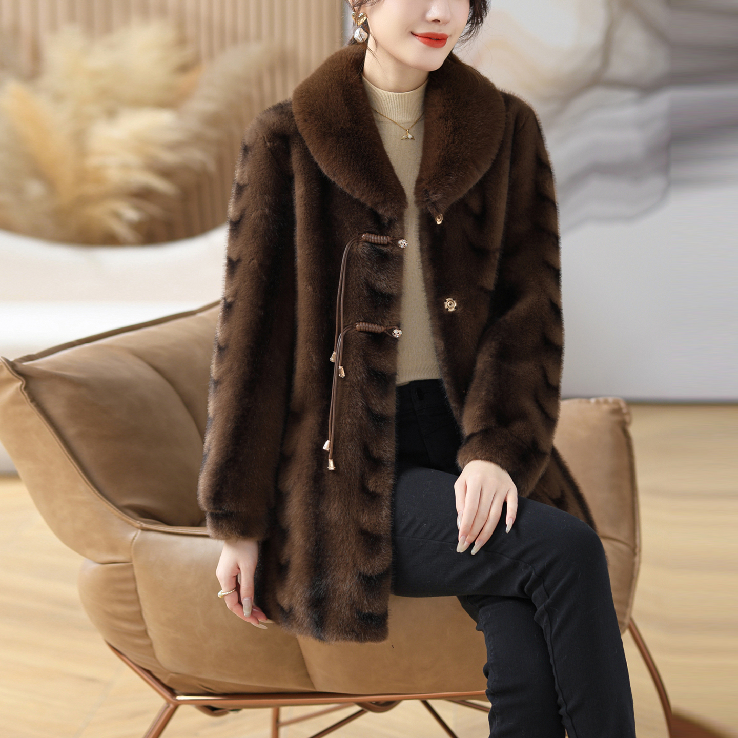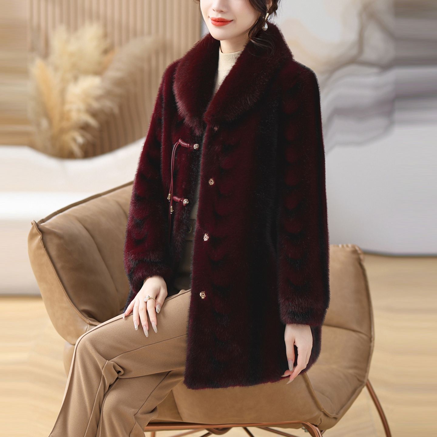 秋冬装 中老年女装 妈妈新款 仿皮草外套中长款 皮毛一体大衣 宽松大码