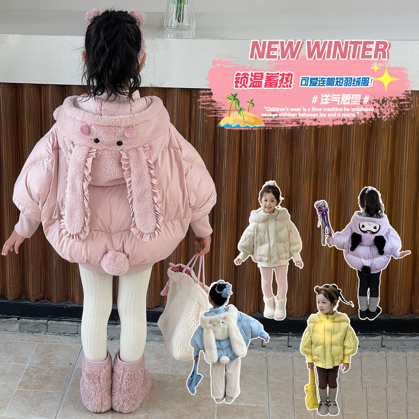 洋气时髦女宝宝可爱连帽保暖加厚外套 冬装 女童短款 羽绒服2025新款