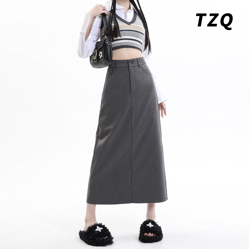 播商场同款 好看裙子BDS1BD1329 黑色开叉下摆半身裙女25春秋新款