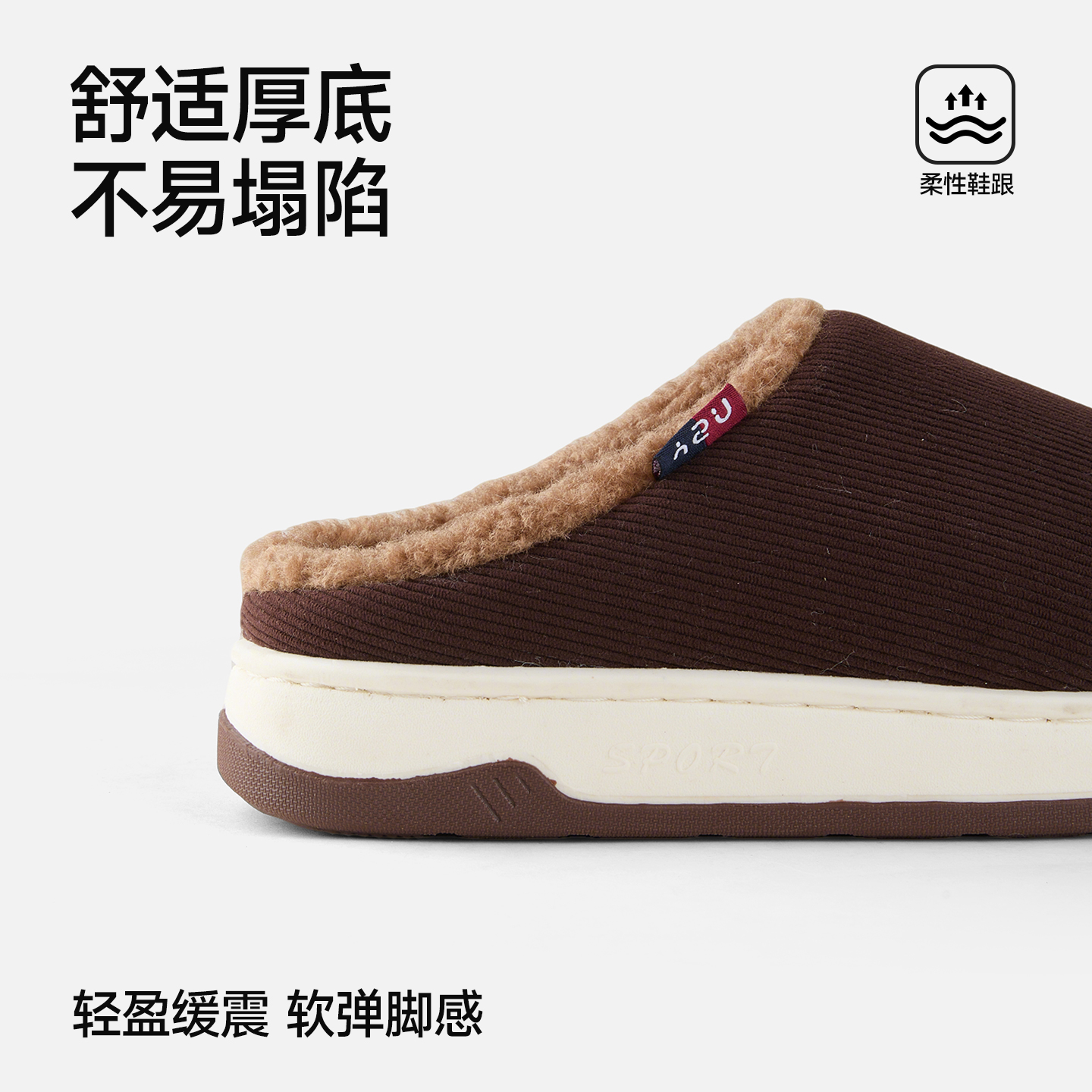 女士厚底居家室内软底舒适可外穿防滑老人棉鞋 冬季 毛绒保暖棉拖鞋