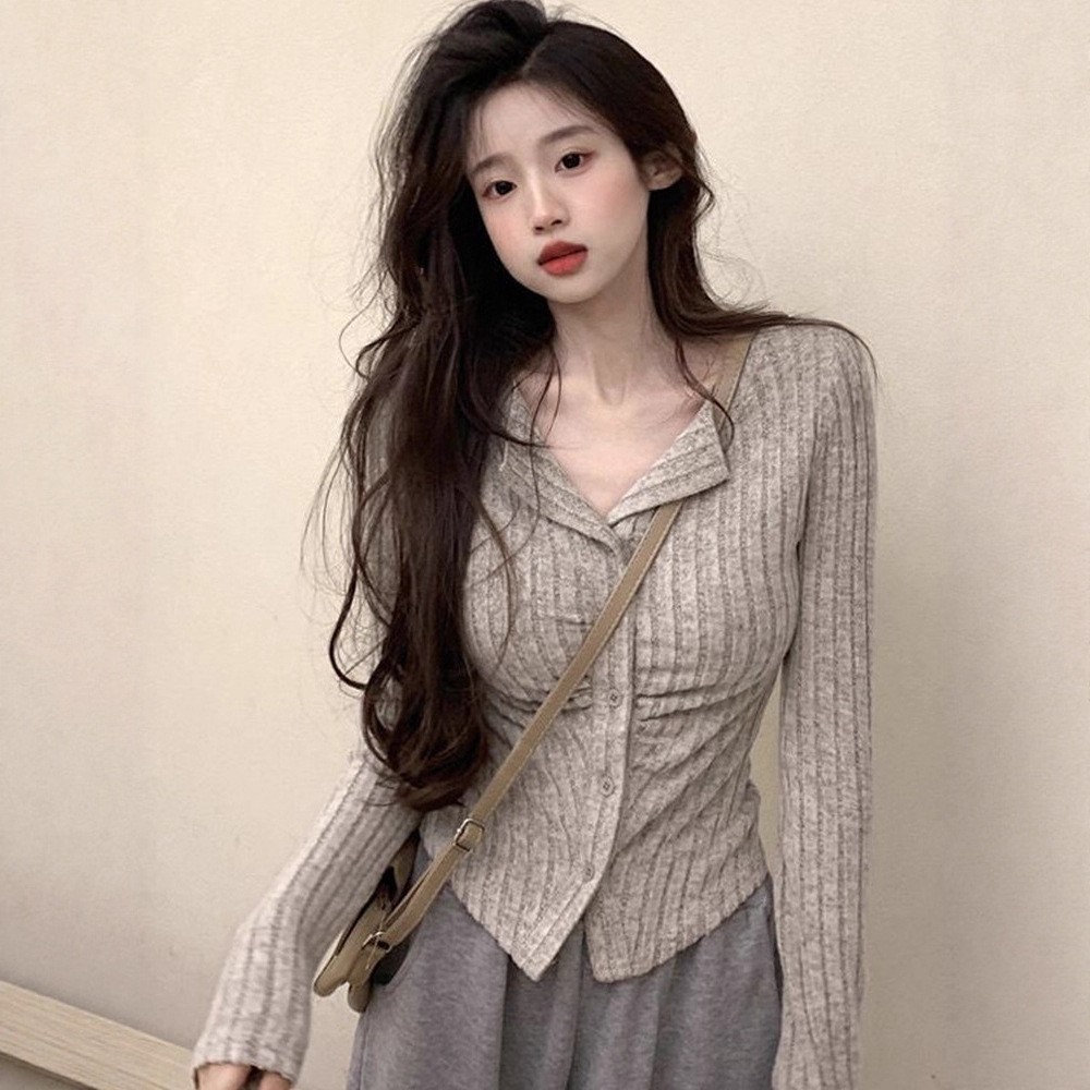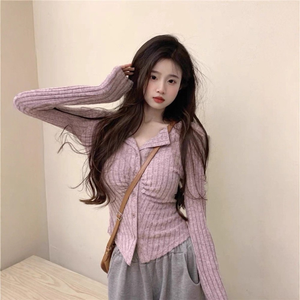 秋季 女上衣新款 长袖 修身 内搭T恤 美式 显瘦大码 纯欲风辣妹针织开衫