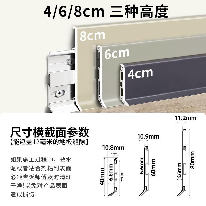 网红奶油风铝合金踢脚线卡扣式 6cm8cm金属地脚线超薄不锈钢贴脚线