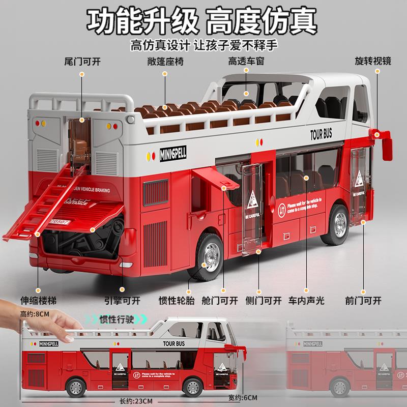 双层合金巴士玩具车儿童公车男孩伦敦大巴校车公共汽车模型摆件