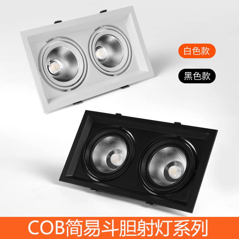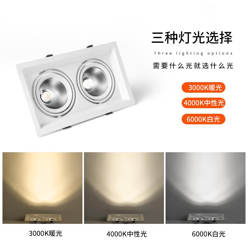 LED双头射灯单头三头斗胆灯嵌入式 格栅天花板灯商用方形筒灯15